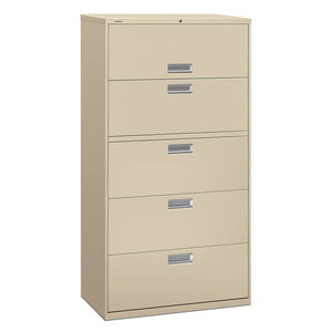 HON Brigade 600 36inW x 18inD Lateral 5-Drawer File Cabinet, Putty