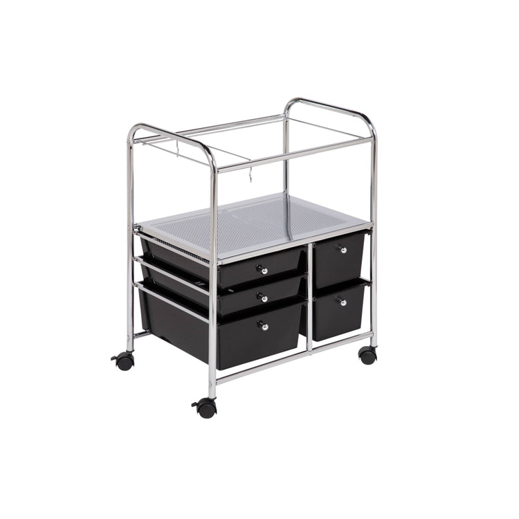 Honey-Can-Do 5-Drawer Plastic/Steel Hanging File Rolling Office Cart, 38 1/2inH x 21 1/2inW x 15 1/4inD, Chrome/Black