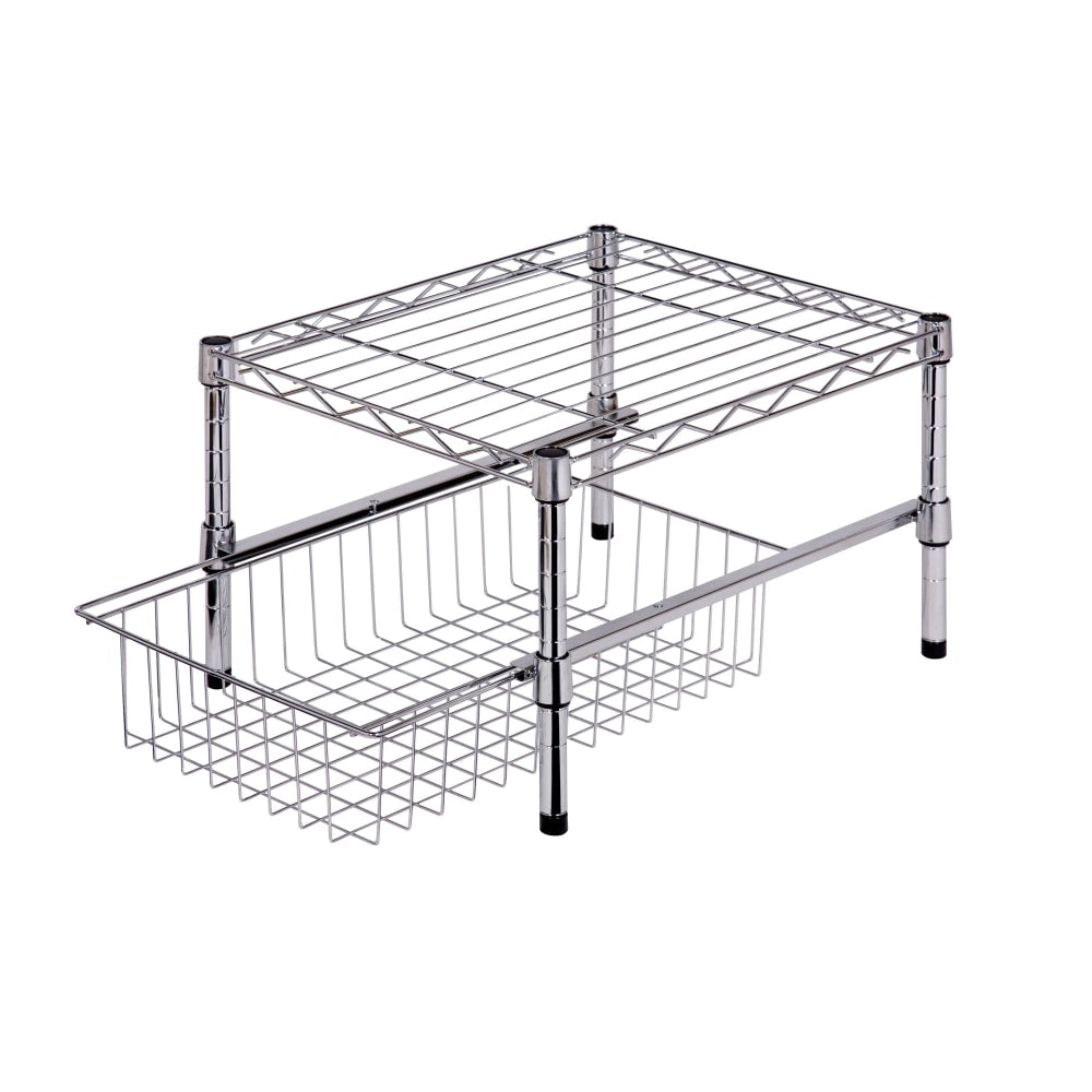 Honey-Can-Do Adjustable Cabinet Organizer With Shelf And Basket, 11inH x 14 3/4inW x 17 3/4inD, Chrome