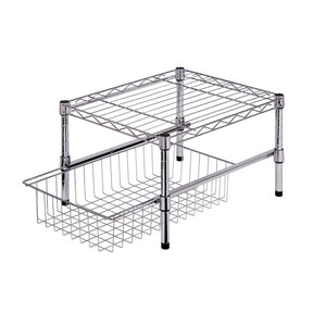 Enhance the storage inside cabinets under your sink or in the kitchen with this organizer. The shelf can be adjusted to accommodate your needs, and a pull-out wire basket helps contain smaller items.