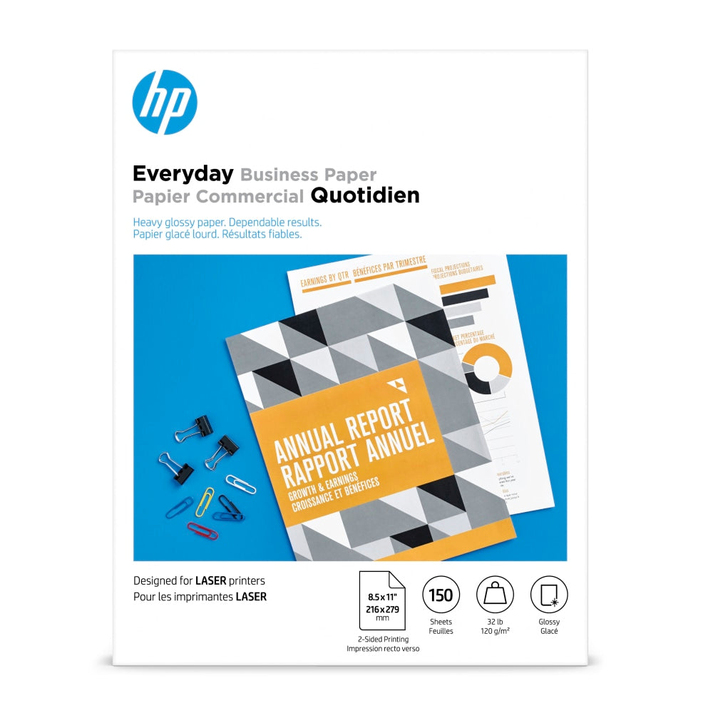 HP Everyday Business Paper for Laser Printers, Glossy, Letter Size (8 1/2in x 11), Heavy 32 Lb, Pack Of 150 Sheets (4WN08A)