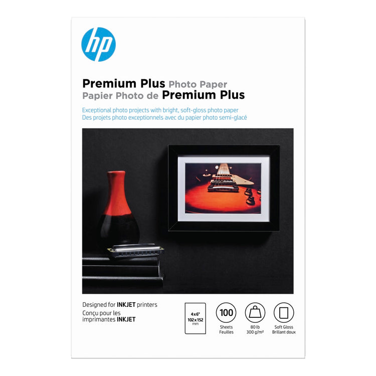 HP Premium Plus Photo Paper for Inkjet Printers, Soft Gloss, 4in x 6in, 80 Lb., Pack Of 100 Sheets (CR666A)