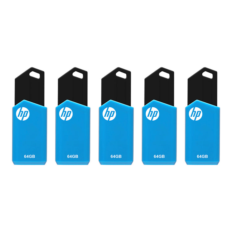 HP v150w USB 2.0 Flash Drives, 64GB, Blue, Pack Of 5