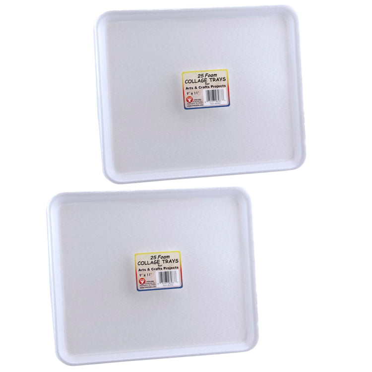 Hygloss Foam Trays, 9in x 11in, 25 Trays Per Pack, Set Of 2 Packs