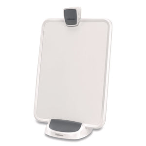 Fellowes I-Spire Series Document Lift features an Innovative 3-in-1 design: document holder, dry-erase board and clipboard. Places documents in a more comfortable viewing position to help reduce neck, shoulder and eye strain. Allows portrait and landscape orientation. Dry erase board for quick notes or reminders, while copy clip holds up to 100 sheets of letter-sized paper. Perfect for use in the office, home office, school, or wherever you need to view documents.