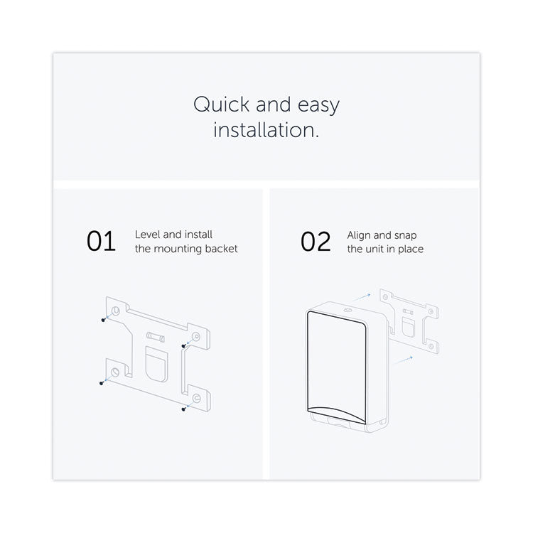 The Kimberly-Clark Professional ICON™ dispensing system is changing the face of the restroom. Featuring first-of-a-kind versatility, the ICON™ dispenser effortlessly enhances the look of the restroom with an exclusive line of designer faceplates to help reimagine the space. These dispensers feature our patented, interchangable faceplate technology and complement the other ICON™ paper towel and toilet paper dispensers in the collection. Select one of our six signature faceplate designs. Touchless operation is critical to maintaining the highest levels of hand-hygiene, and these dispensers will deliver up to 60,000 uses on one set of batteries. Custom mounting bracket with built-in level for easy installation. Can be used with our Kleenex Botanics Soap and Sanitizer, or any of our Scott brand automatic skin care refills.