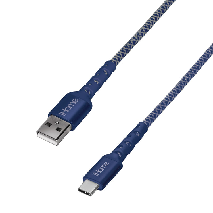 iHome Nylon-Braided USB-A To USB-C Cable With Durstrain, 6ft, Blue