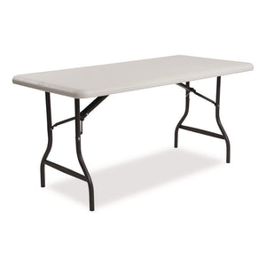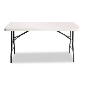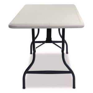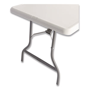 Folding tables so multi-functional you'll wonder how you lived without them. Industrial-grade construction more than stands up to the tough demands that offices, schools, hotels and conference centers make. An attractive, contemporary design ensures they'll fit in wherever you place them. Dent- and scratch-resistant, easy-to-clean top is fabricated of blow-molded high-density polyethylene and features soft-beveled radius edges. Powder-coated, round metal-tube legs feature fold-out braces for extra strength and stability. Ideal for indoor and outdoor use. Tables nest together when stacked, with their legs folding into protective channels, to help you maximize your available storage space.