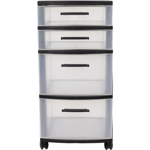 Make organizing your towels, toys and other items easy by using this Inval Rolling Storage Cart. The cart offers 4 drawers, each made of clear polypropylene for strength, and the rolling design helps you move it around if needed.
