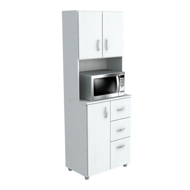 Inval Storage Cabinet With Microwave Stand, 4 Shelves, 66inH x 24inW x 15inD, Laricina White