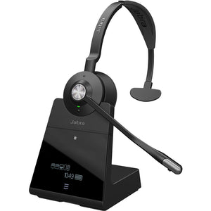 The Engage 75 DECT mono wireless headset has a 150m/490' range and an integrated busy light. Use this Jabra Engage black headset all day with its battery life that lasts up to 13 hours.
