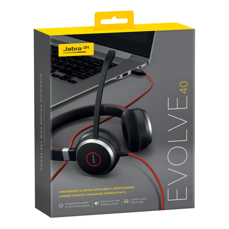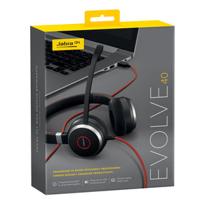 Jabra EVOLVE 40 UC SME Headset - Stereo - Mini-phone (3.5mm) - Wired - Over-the-head - Binaural - Supra-aural - Noise Canceling - Black