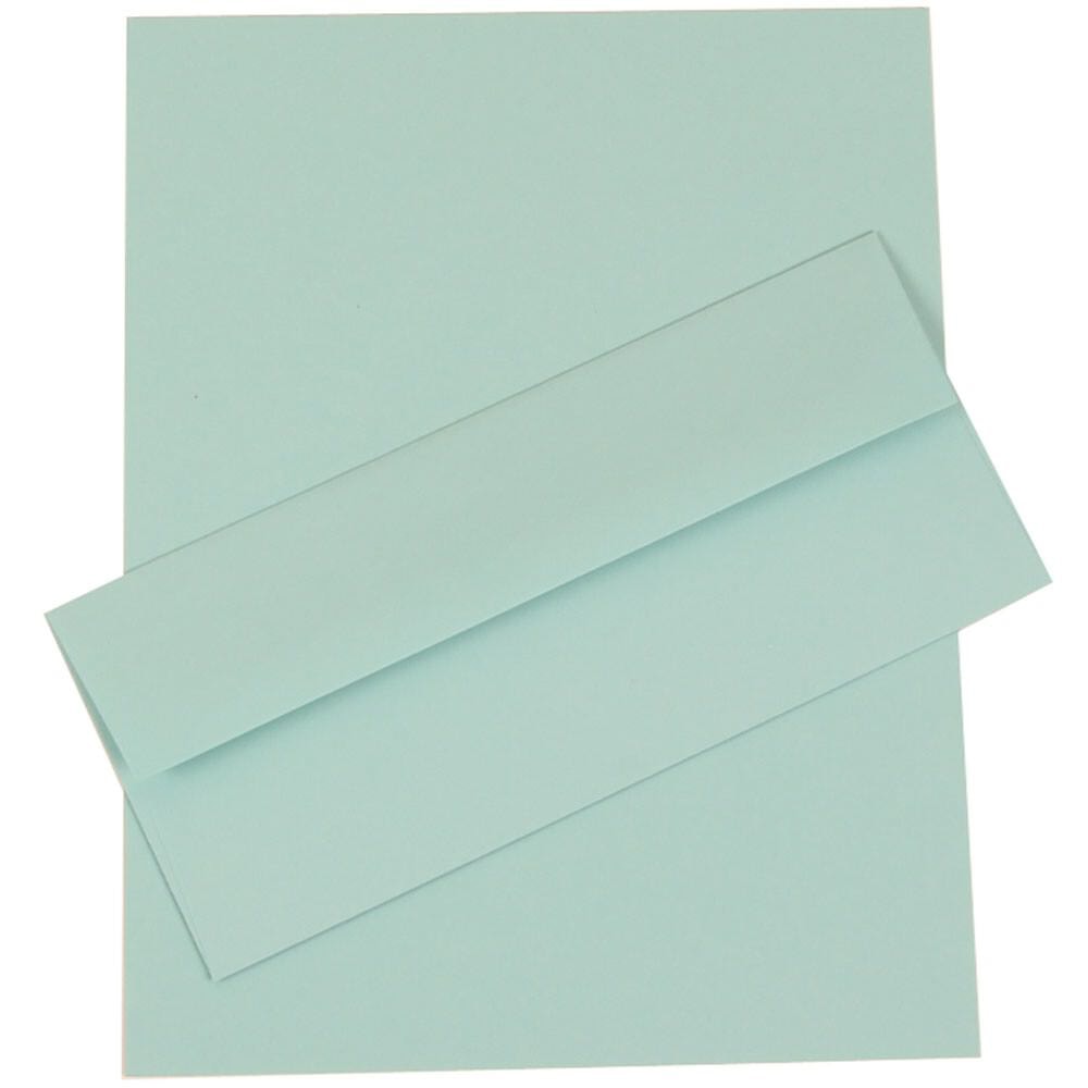 JAM Paper Business Stationery Set, 8 1/2in x 11in, Aqua, Set Of 50 Sheets And 50 Envelopes