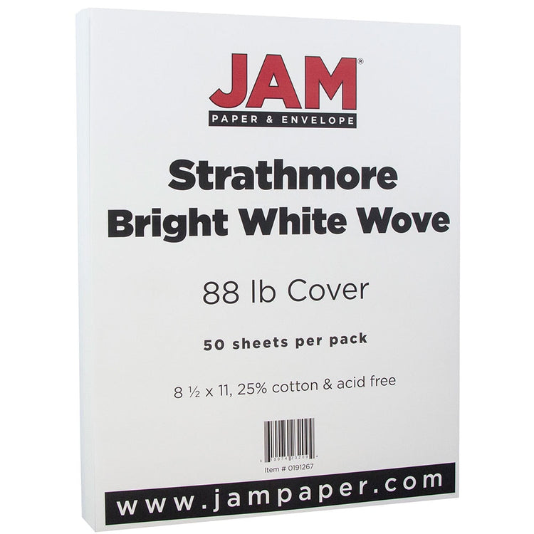 JAM Paper Card Stock, Strathmore Bright White Wove, Letter (8.5in x 11in), 88 Lb, Pack Of 50