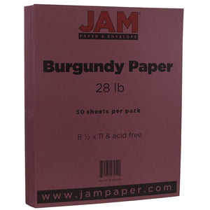 JAM Paper Color Multi-Use Printer & Copy Paper, Burgundy, Letter (8.5in x 11in), 50 Sheets Per Pack, 28 Lb