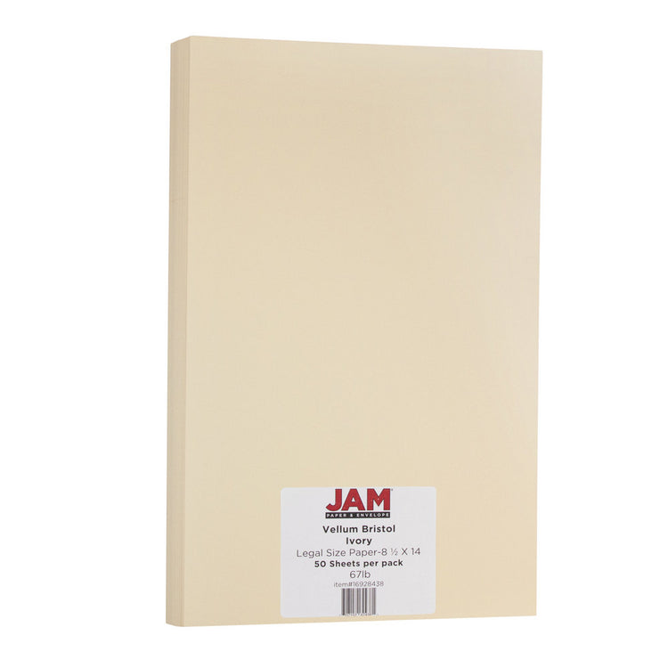JAM Paper Legal Card Stock, Vellum Bristol Ivory, Legal (8.5in x 14in), 67 Lb, Pack Of 50