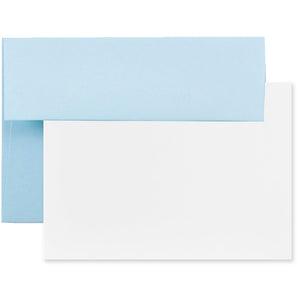 JAM Paper Stationery Set, 5 1/4in x 7 1/4in, Set Of 25 White Cards And 25 Baby Blue Envelopes