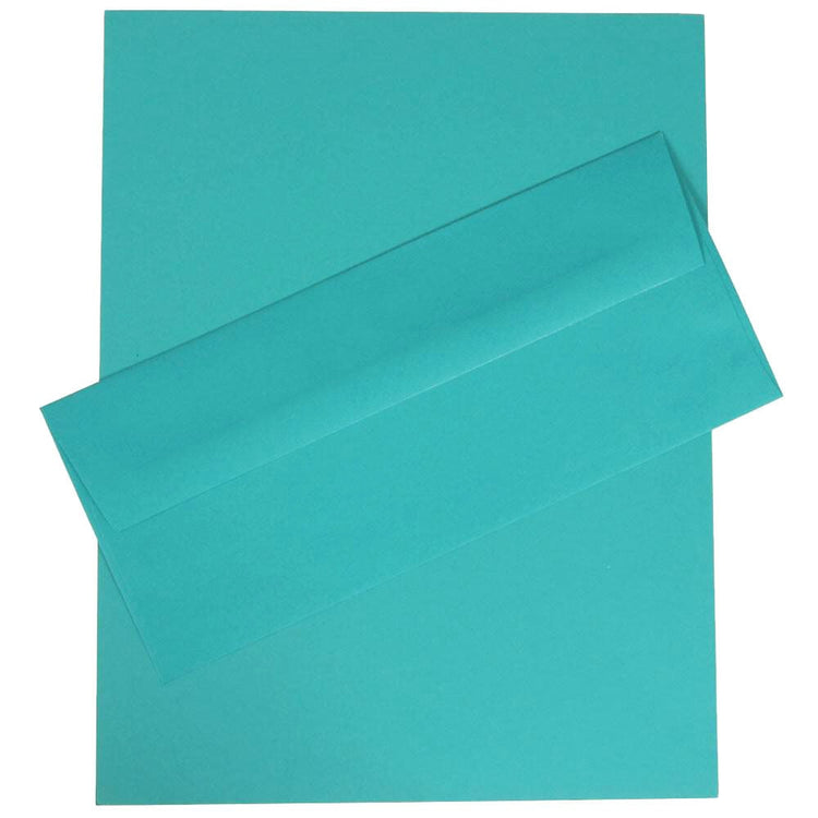 JAM Paper Stationery Set, 8 1/2in x 11in, 30% Recycled, Sea Blue, Set Of 100 Envelopes And 100 Sheets