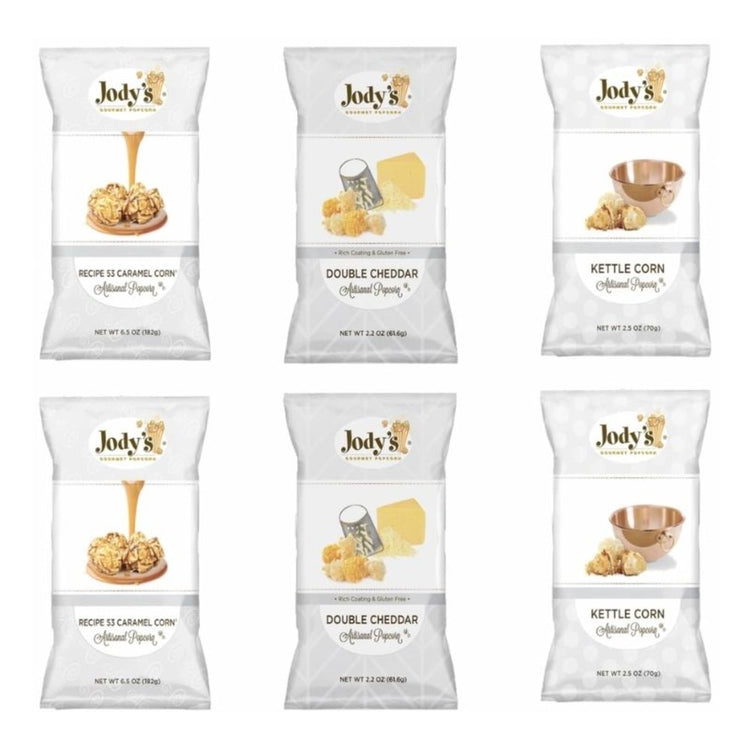 Choose your favorite flavor of popcorn with this Jody's Popcorn Best Sellers Variety Popcorn. With 3 separate flavors included in this variety pack of popcorn, you'll find a snack you love.