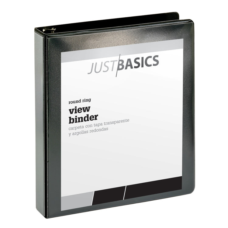 Just Basics Basic View 3-Ring Binder, 1 1/2in Round Rings, Black