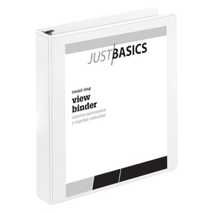 Just Basics Basic View 3-Ring Binder, 1 1/2in Round Rings, White