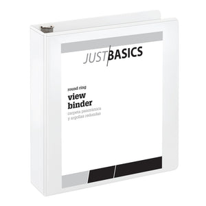 Just Basics Basic View 3-Ring Binder, 2in Round Rings, White