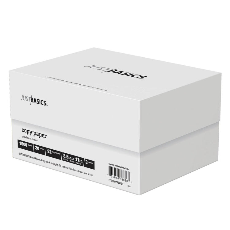 Just Basics Multi-Use Printer & Copy Paper, White, Letter (8.5in x 11in), 1500 Sheets Per Case, 20 Lb, 92 Brightness, Case Of 3 Reams