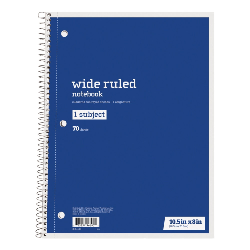 - Just Basics spiral notebook is wide ruled with 140 pages (70 sheets).