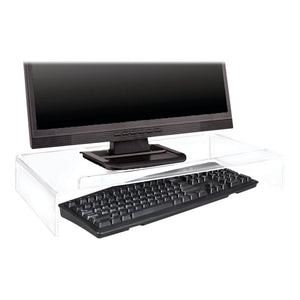 - Raises your monitor to reduce neck and eyestrain and conserves desktop space
