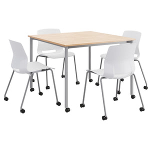 Upgrade your kitchen or dining area with a KFI Studios Dailey Square Dining Set With Caster Chairs. A sturdy laminate table top seats up to 4 guests comfortably. Chairs feature rolling casters for ease of movement.