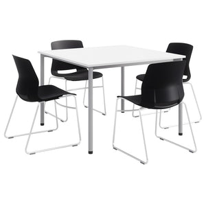 KFI Studios Dailey Square Dining Set With Sled Chairs, White/Silver/Black