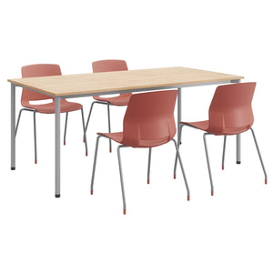KFI Studios Dailey Table Set With 4 Sled Chairs, Natural/Silver Table/Coral Chairs