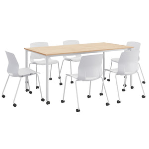 KFI Studios Dailey Table Set With 6 Caster Chairs, Natural Table/White Chairs