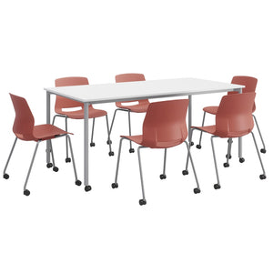KFI Studios Dailey Table Set With 6 Caster Chairs, White/Gray Table/Coral Chairs