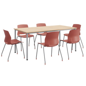 KFI Studios Dailey Table Set With 6 Poly Chairs, Natural/Silver Table/Coral Chairs