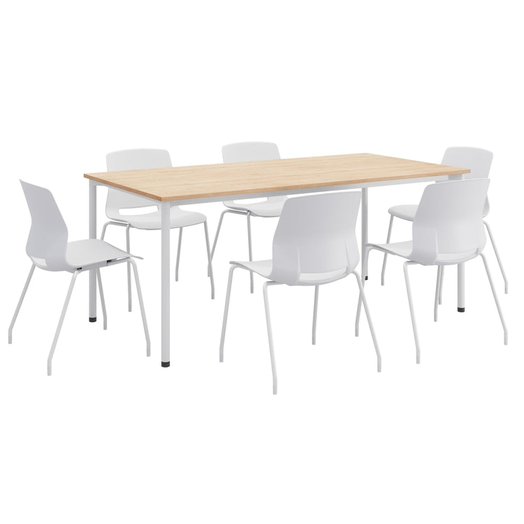 KFI Studios Dailey Table Set With 6 Poly Chairs, Natural Table/White Chairs