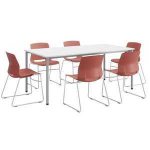 KFI Studios Dailey Table Set With 6 Sled Chairs, White/Gray Table/Coral Chairs
