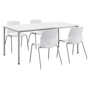 Modernize your space with a KFI Studios Dailey Table Set With 4 Sled Chairs. Durable chairs boast vented seats for cooling airflow. The laminate table top offers lasting durability.