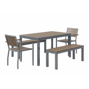Add modern style to your patio with the KFI Studios Eveleen 5-Piece Outdoor Patio Set. This set includes 2 chairs and 2 benches for a variety of seating options. Each piece is resistant to water and corrosion for lasting strength.