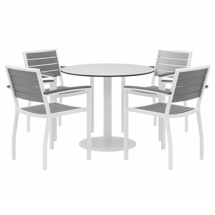 Modernize your outdoor dining area with the KFI Studios Eveleen 5-Piece Outdoor Patio Set. The spacious tabletop has plenty of space for you and your guests. Pieces are resistant to water and corrosion for safe outdoor use.