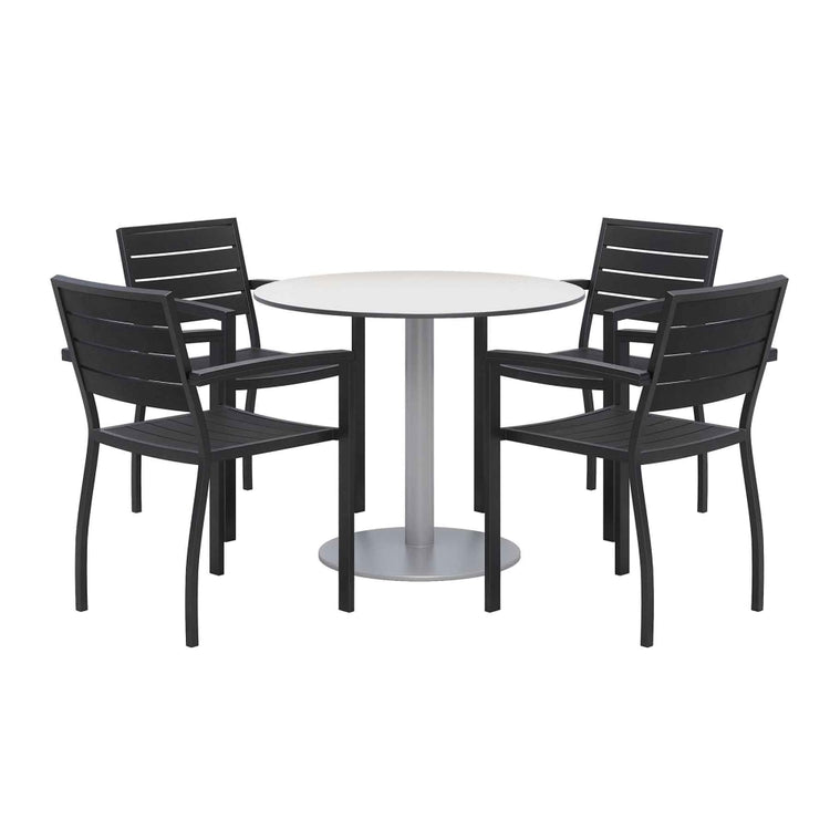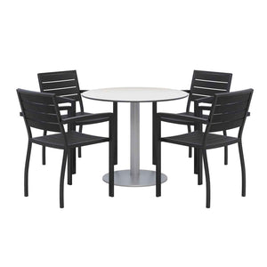 Modernize your outdoor dining area with the KFI Studios Eveleen 5-Piece Outdoor Patio Set. The spacious tabletop has plenty of space for you and your guests. Pieces are resistant to water and corrosion for safe outdoor use.
