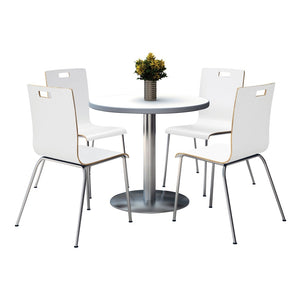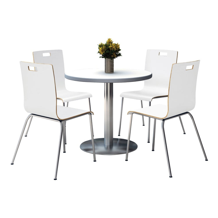 KFI Studios Jive Round Pedestal Table With 4 Stacking Chairs, 29inH x 36inW x 36inD, White/Crisp Linen