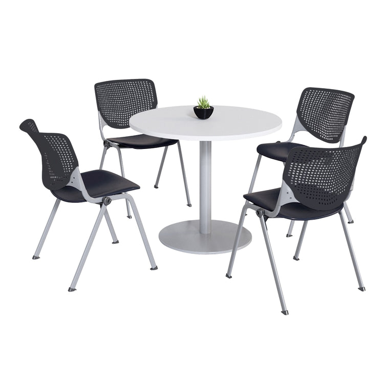 KFI Studios KOOL Round Pedestal Table With 4 Stacking Chairs, 41inH x 36inD, Designer White/Black