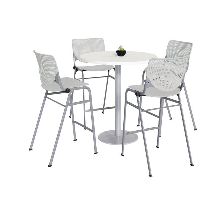KFI Studios KOOL Round Pedestal Table With 4 Stacking Chairs, 41inH x 36inD, Designer White/Light Gray
