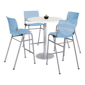 KFI Studios KOOL Round Pedestal Table With 4 Stacking Chairs, 41inH x 36inD, Designer White/Sky Blue
