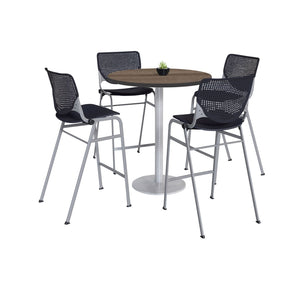 KFI Studios KOOL Round Pedestal Table With 4 Stacking Chairs, 41inH x 36inD, Studio Teak/Black