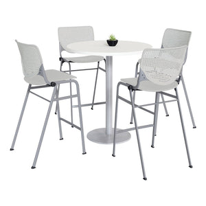 KFI Studios KOOL Round Pedestal Table With 4 Stacking Chairs, White/Light Gray
