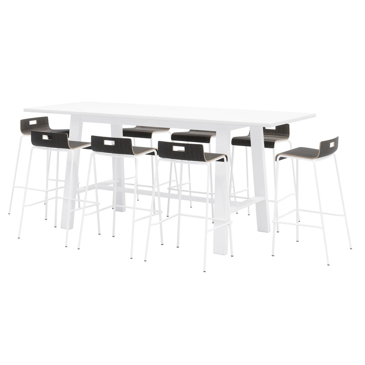 - Includes a table and 8 stools.