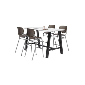KFI Studios Midtown Bistro Table With 4 Stacking Chairs, 41inH x 36inW x 72inD, Designer White/Brownstone