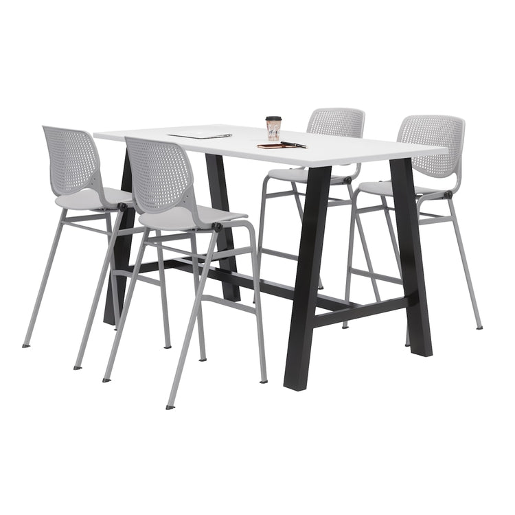 KFI Studios Midtown Bistro Table With 4 Stacking Chairs, 41inH x 36inW x 72inD, Designer White/Light Gray